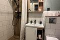 - В санузле душевой отсек с тропическим душем, раковина, унитаз с гигиеническим душем, электрический полотенцесушитель.