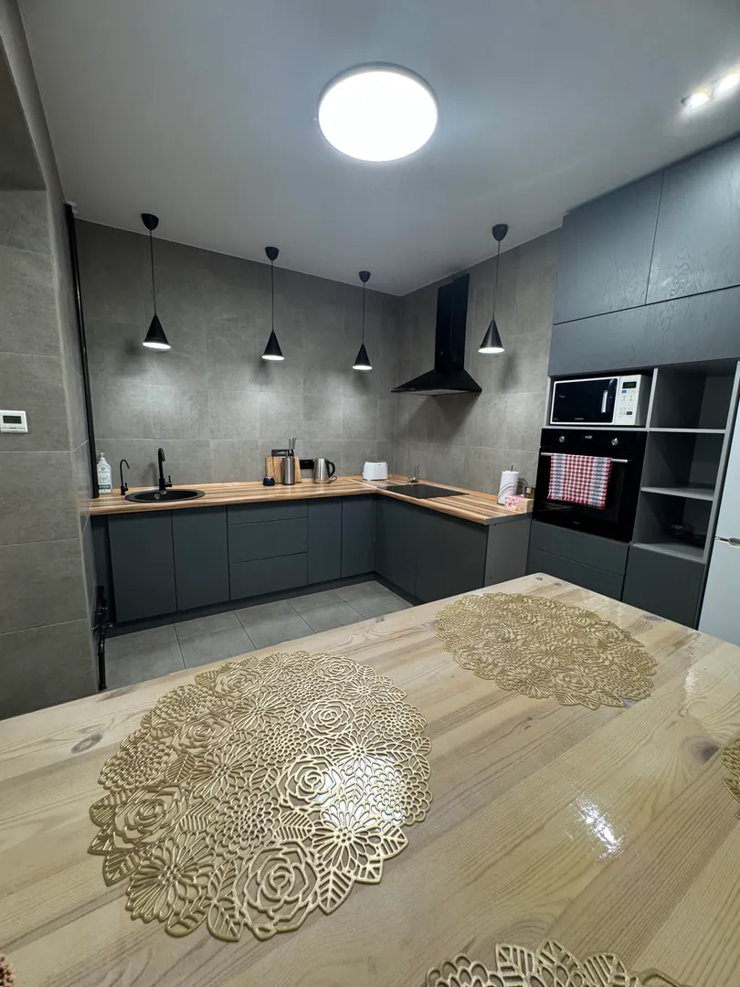 Удобное месторасположение дома. Рядом все есть, магазины, аптеки кафешки. До центра недалеко. Сама квартира двухуровневая. 6 человек разместились с комфортом. Ремонт на уровне. Много интересных решений для себя почерпнули.