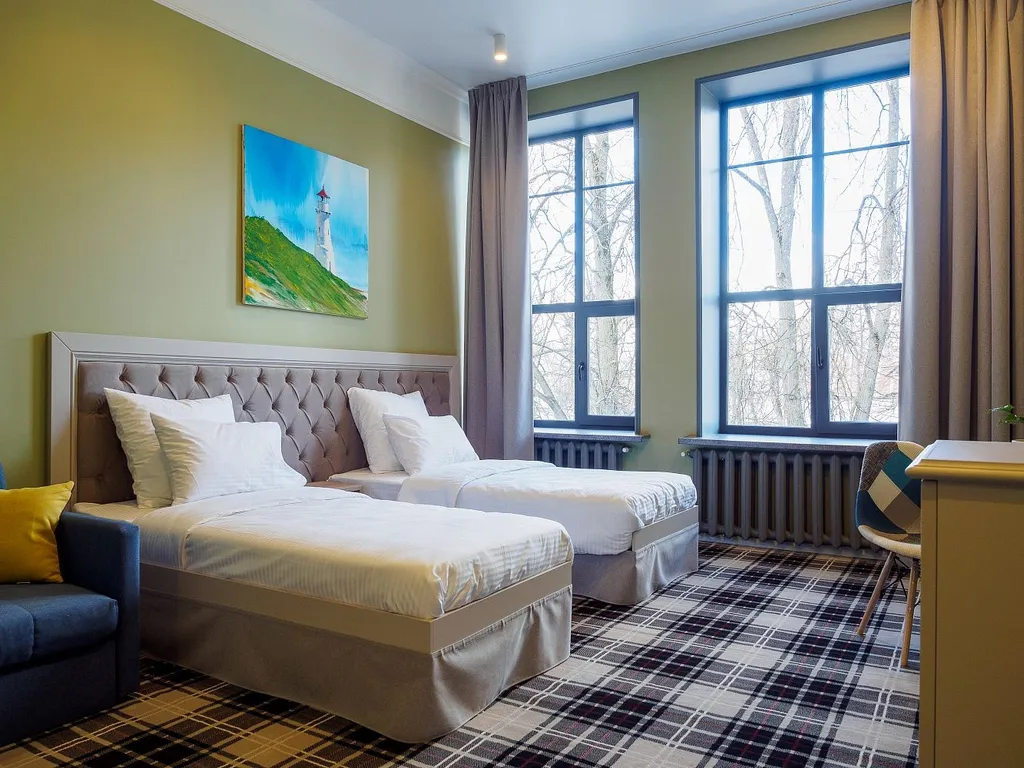 Сняли на ночь два соседних номера. Совершенно одинаковые по оформлению, у одного больше площадь санузла, но меньше коридор, у другого наоборот. По цене-качеству вполне хорошо. Уютно, кровать удобная, шторы светонепроницаемые. Расположение очень удобное, по улице вверх- самый центр, вниз-причал с рестораном, где снимали «Жестокий романс», очень вкусно, кстати. Машину можно оставить на улице прямо перед апарт-отелем. Заселение удаленное, ресепшн отсутствует, но хозяйка на связи в мессенджере. Из неудобств-слышимость, если в коридоре возня, слышно как-будто рядом. И вид из окна-стена и крыша впритык, но для пребывания в номере одну ночь это не проблема. Завтрак внизу скромный, но можно выбрать для себя что-то. Так что для непритязательных туристов очень даже ничего.